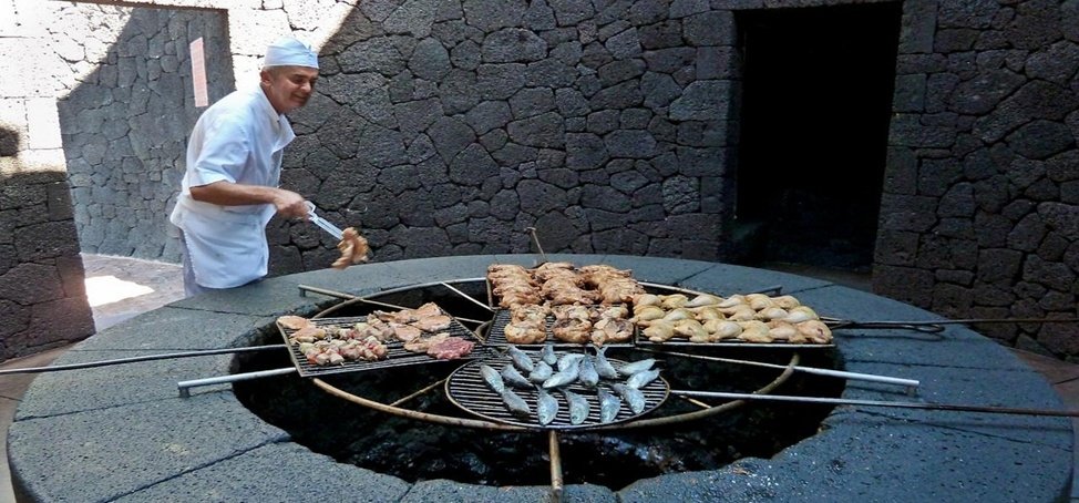 Канары, национальный парк Тиманфайя, гектары выжженных холмов, напоминающих марсианскую пустыню: остров Лансароте почти полностью состоит из вулканов. На одном из них расположено здание. Это ресторан - El Diablo. В 70 - х годах прошлого века двое архитекторов накрыли жерло вулкана прочными решетками. Вокруг них построили продолговатое футуристическое здание - это ресторанный зал. Граты выполняют сразу две функции - фундамента и кухонной плиты. Прямо на решетке повар готовит мясо. Здесь не надо разжигать или поддерживать огонь - хватает горячих вулканических испарений.
