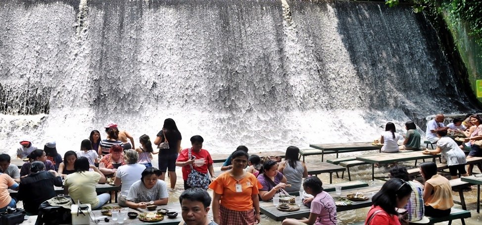 Главной фишкой ресторана есть водопад. Когда-то этот бурный поток люди заковали в бетон и облагородили, поставили столики у его подножия. Посетителям ресторана приходится закатывать штаны, так как уровень воды - от 15 до 20 см.