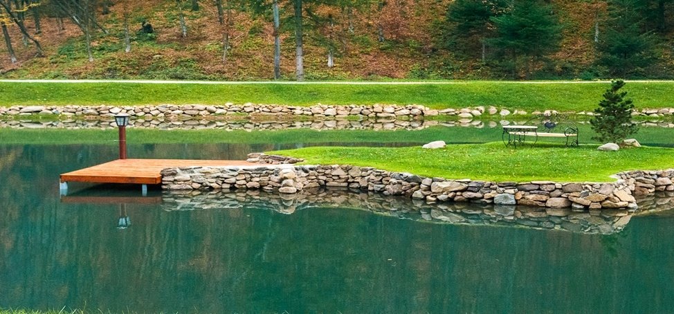 Над озером возобновлена работа старой каменной мельницы, внутри которой - 2 жернова весом по пол тонны. Совершив прогулку вокруг озера, вы попадете на мост Четырех Евангелистов, на котором установлено 4 скульптуры, по технике исполнения напоминают скульптуры из Карлова моста в Праге.